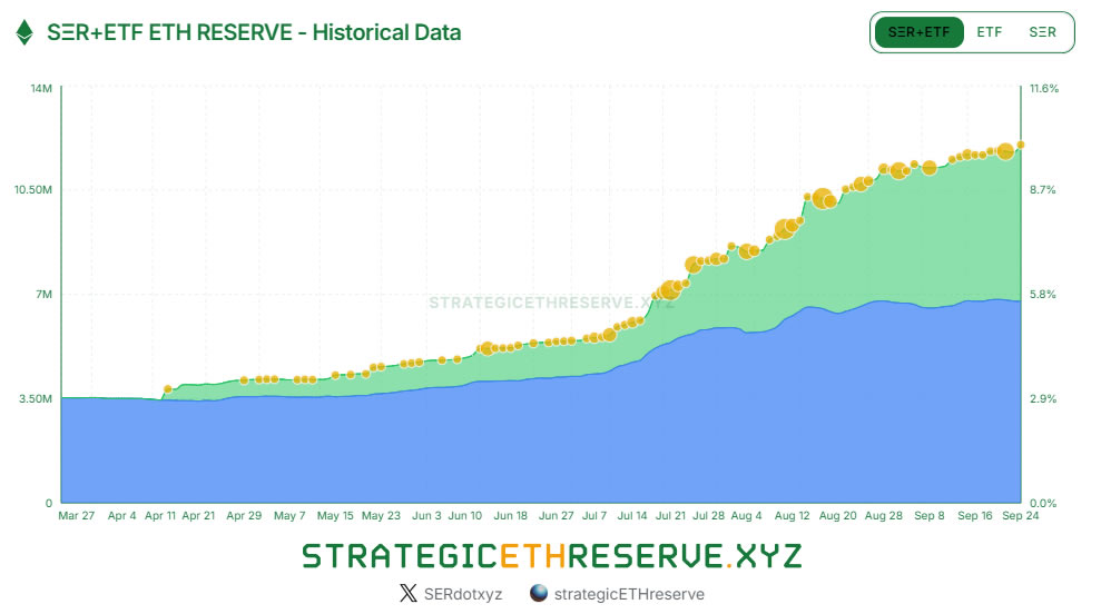 自公司以来,外汇流出加速了以太国库比如汤姆·李主持的BitMine,现在持有超过2%在总供应中,6月份开始积极积累资产。 自4月以来,大约68个实体已经获得了526万个ETH,价值约217亿美元,占整个供应的4.3%。根据战略储备。 他们中的绝大多数人将资产押在资产上,以获得额外的收益,而不是将其持有在交易所。 同期,美国现货以太交易所交易基金的资金流入也有所增加。这些现在总共有675万个ETH,价值近280亿美元,相当于总供应量的5.6%。 这意味着大约10% 的ETH已经进入机构实体,并且在过去几个月中积累加速。